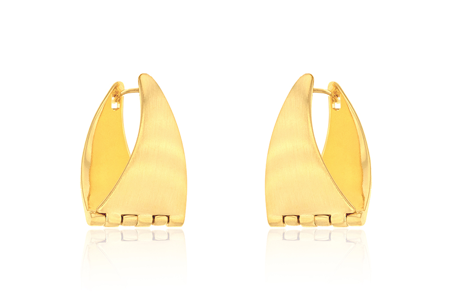 BRINCO BANHADO EM OURO, ARGOLA TRIANGULAR 22mm ALTURA, LISO OU ACETINADO, PROVIN OPAC