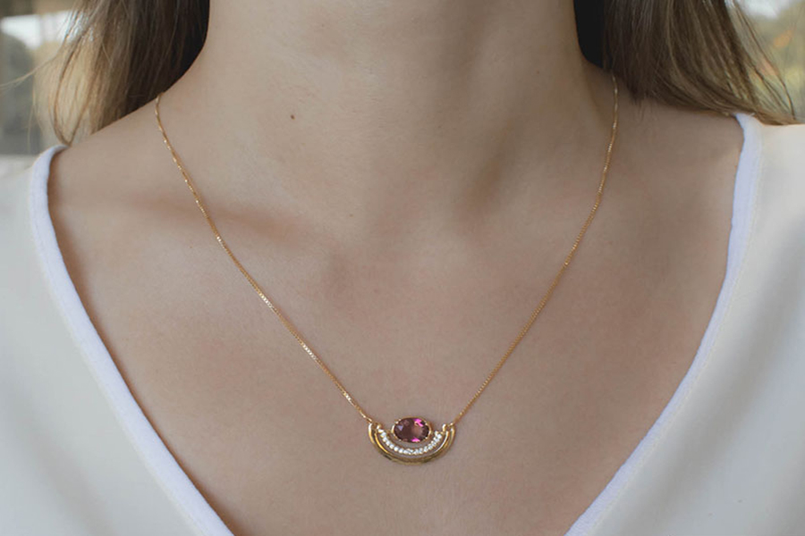 GARGANTILHA BANHADA EM OURO, CRISTAL FUSION RETANGULAR 14x10mm, GOTA 14x10mm, VENEZIANA 0,80mm, GRAVATA
