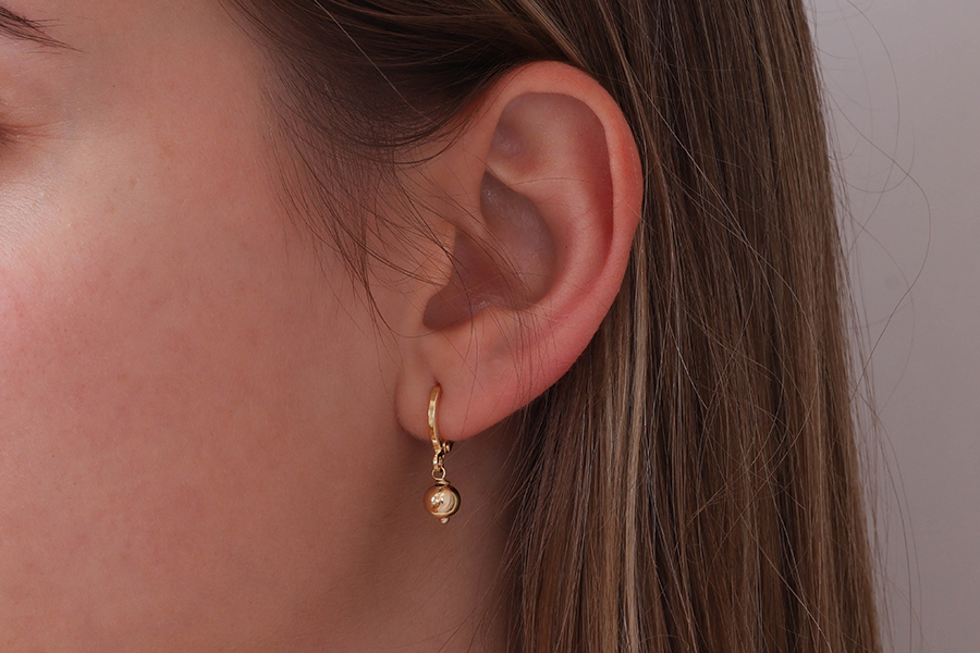 BRINCO BANHADO EM OURO, PÉROLA SHELL PÃO 8mm