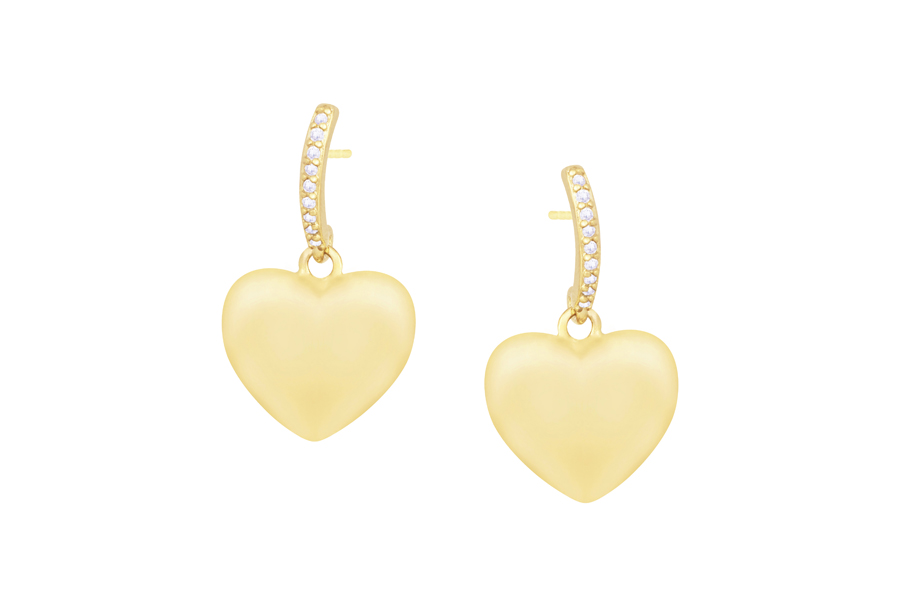 BRINCO BANHADO EM OURO, CRISTAL CORAÇÃO 10mm LARGURA, PARA TODAS AS CORES
