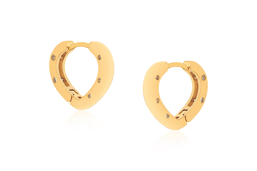 BRINCO BANHADO EM OURO, CORAÇÃO E PONTO DE LUZ 6mm ALTURA