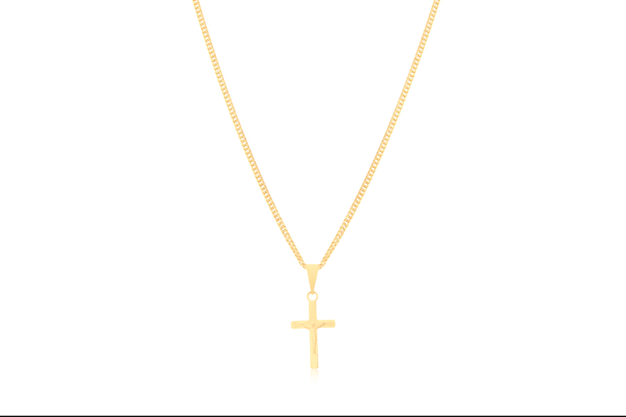 GARGANTILHA BANHADA EM PRATA LEVE, VENEZIANA 0,80mm, 40cm COMPRIMENTO, EXTENSOR 5cm COMPRIMENTO E CRUZ 3,60X2,20cm