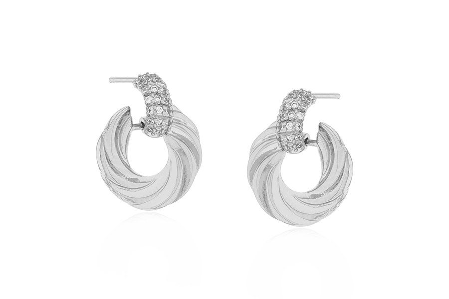 BRINCO BANHADO EM RÓDIO BRANCO, MEIA ARGOLA 18mm ALTURA E 15mm LARGURA