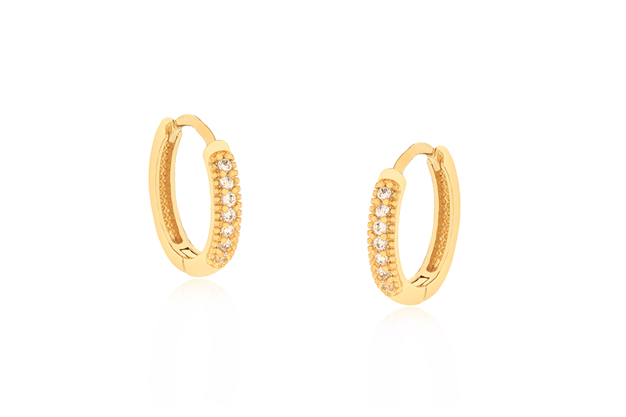 BRINCO BANHADO EM OURO, PONTO DE LUZ 14mm, LINHA TRADICIONAL