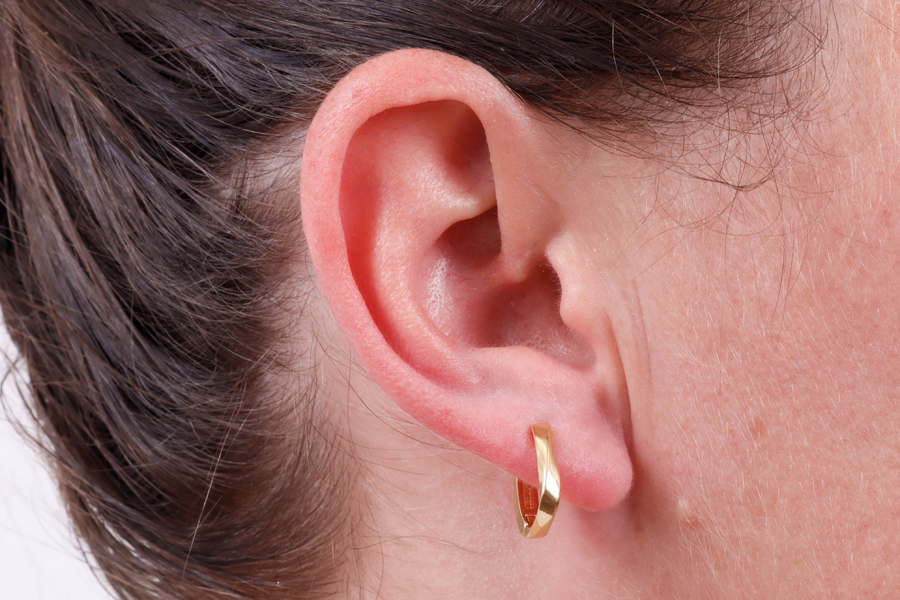 BRINCO BANHADO EM OURO, 5,50mm DIÂMETRO COM TARRAXA BABY