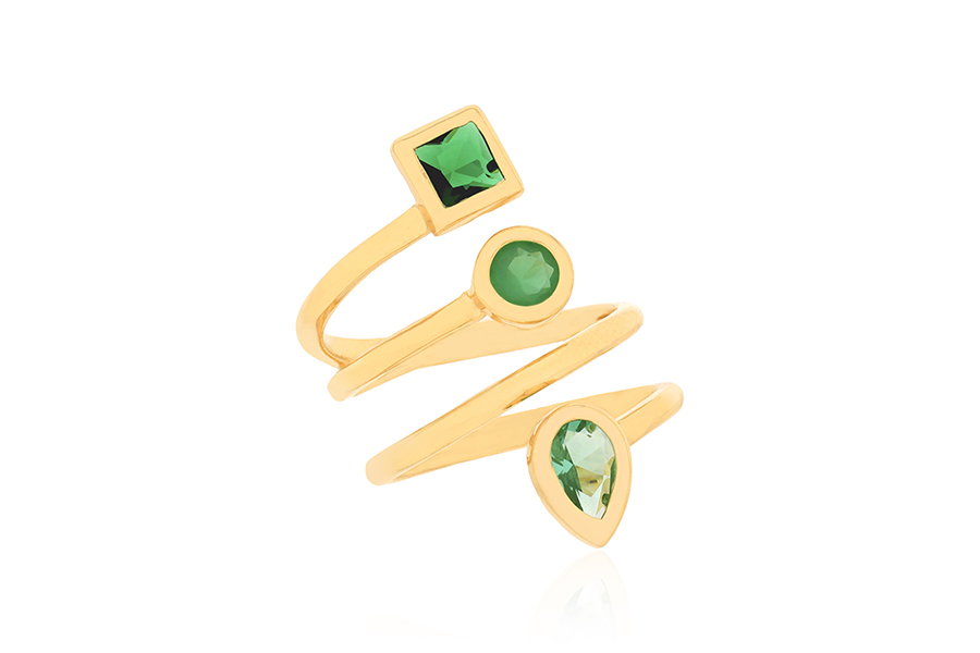 ANEL BANHADO EM OURO, TORCIDO, COM RESINA COLORIDA
