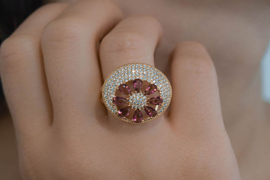 ANEL BANHADO EM RÓDIO BRANCO, ESFERAS LISAS E ZIRCÔNIAS