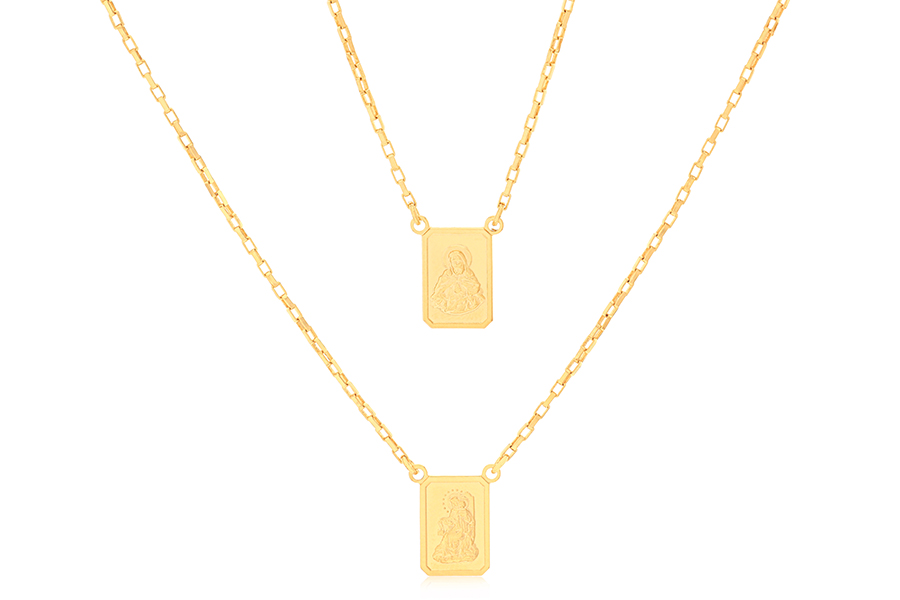 GARGANTILHA BANHADA EM OURO, ESCAPULÁRIO SIMPLES, CARMO, COM VENEZIANA 1,50mm, LINHA TRADICIONAL