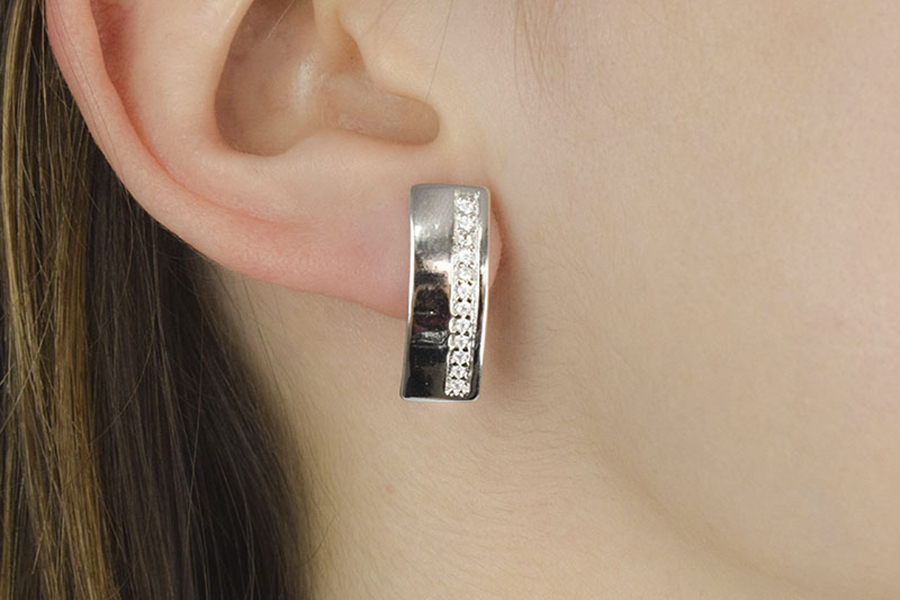 BRINCO EM PRATA, MEIA ARGOLA CRAVEJADA, 9,60mm ALTURA