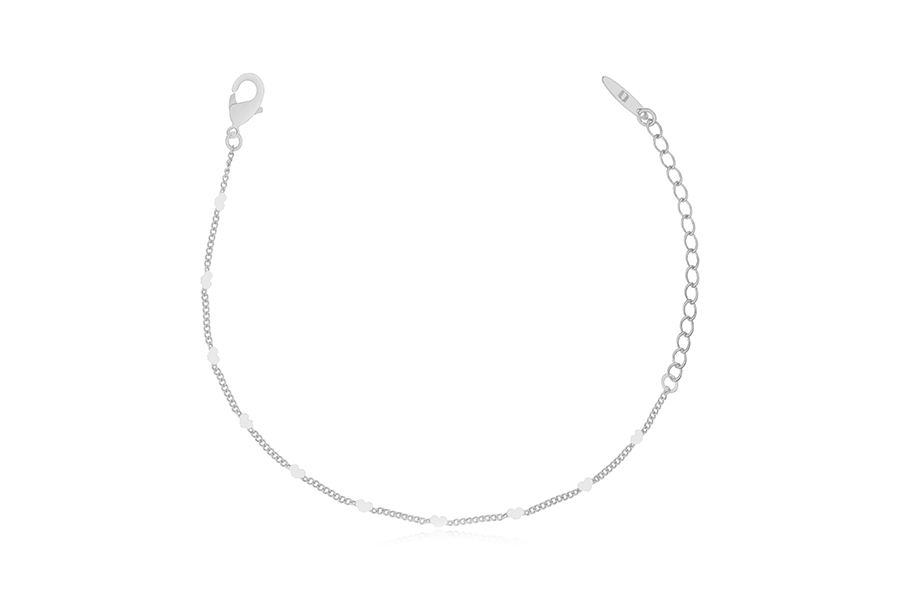 PULSEIRA BANHADA EM RÓDIO BRANCO, ELO PORTUGUÊS 3mm, 16cm COMPRIMENTO E PINGENTE ''FOREVER AND ALWAYS'' 17,50mm DIÂMETRO