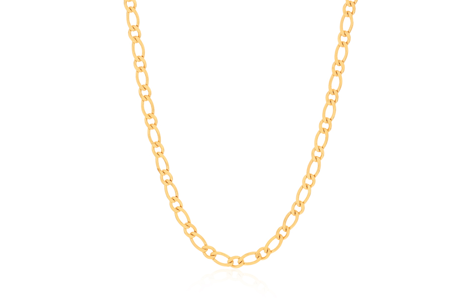 CORRENTE BANHADA EM OURO, ELO PORTUGUÊS 5mm, 45cm COMPRIMENTO, EXTENSOR 5cm COMPRIMENTO E PESO 12,7g