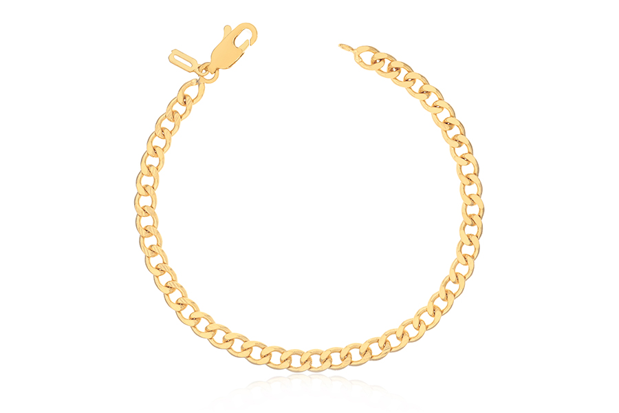 PULSEIRA BANHADA EM OURO, CORRENTE ELO PORTUGUÊS 5mm, 17cm COMPRIMENTO, EXTENSOR 5cm COMPRIMENTO E PESO 4,60g