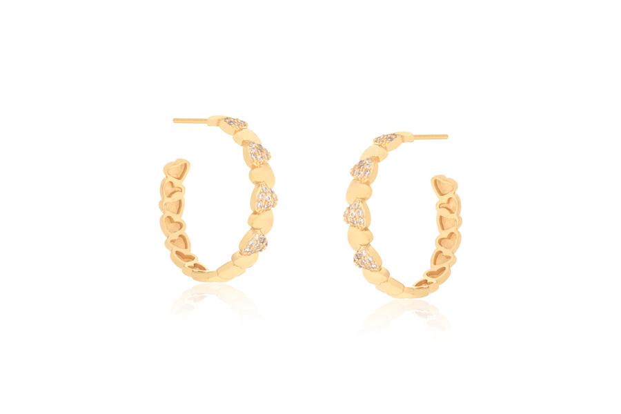 BRINCO BANHADO EM OURO, ARGOLA 38mm DIÂMETRO E CORAÇÃO