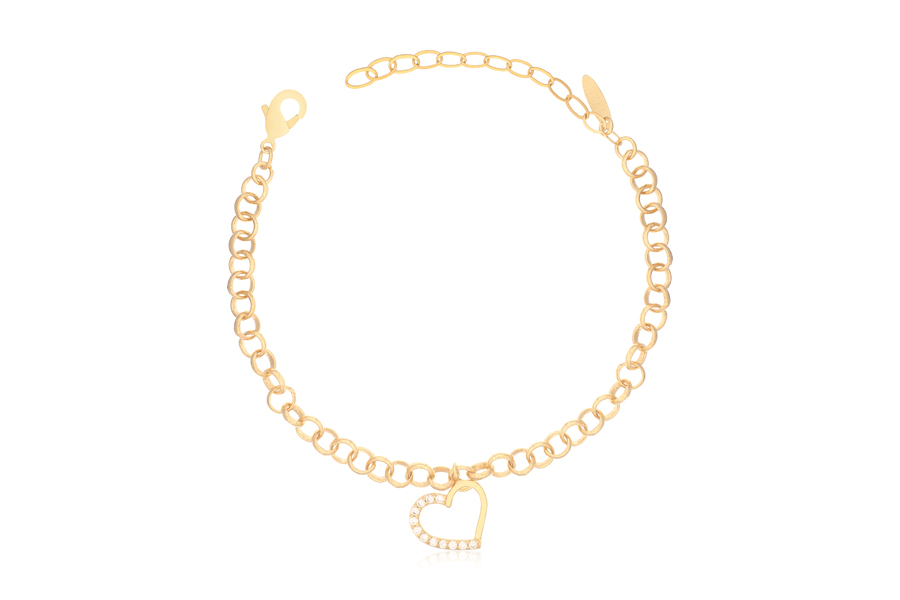 PULSEIRA BANHADA EM OURO, ELO 2,30mm LARGURA, 16cm COMPRIMENTO, EXTENSOR 5cm COMPRIMENTO E CORAÇÃO 7mm LARGURA, PARA QUALQUER COR