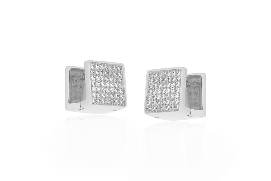 BRINCO BANHADO EM RÓDIO BRANCO, PONTO DE LUZ 5mm, CRAVAÇÃO INGLESA