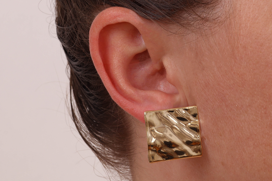 BRINCO BANHADO EM OURO, ARGOLA TRIANGULAR 22mm ALTURA, LISO OU ACETINADO, PROVIN OPAC