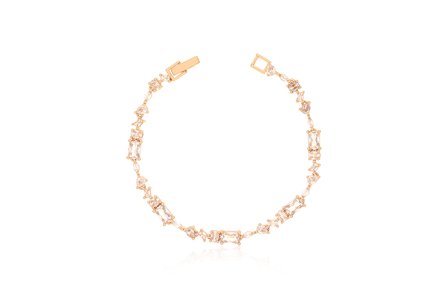 PULSEIRA INFANTIL BANHADA EM OURO, ELO DUPLO 1,80mm E CARTIER 3,50x1,90mm, 15cm COMPRIMENTO, CORAÇÃO, ANJO E CHAVE