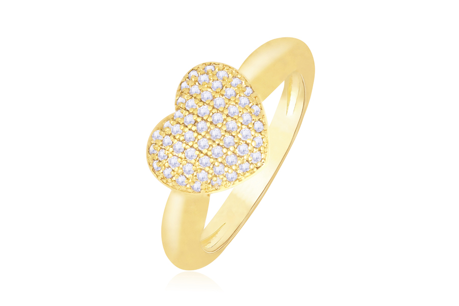 ANEL BANHADO EM OURO, CORAÇÃO COM 166 ZIRCÔNIAS, 20mm LARGURA E 18mm ALTURA