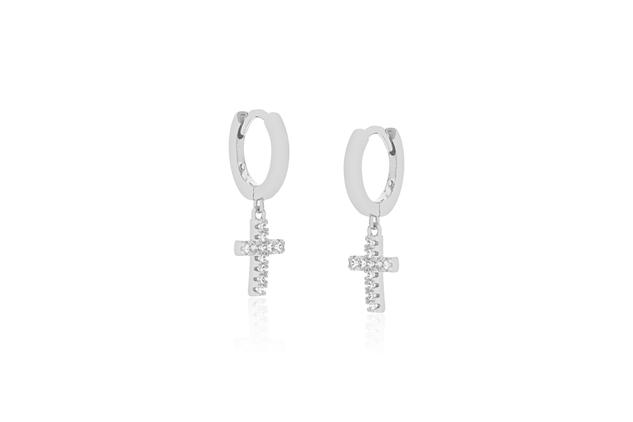 BRINCO BANHADO EM RÓDIO BRANCO, 35mm ALTURA E ZIRCÔNIA 8mm