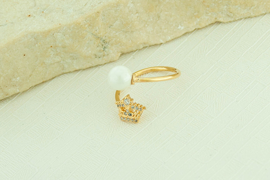 ANEL BANHADO EM OURO, MADREPÉROLA GOTA 16mm ALTURA, BORDA TRABALHADA