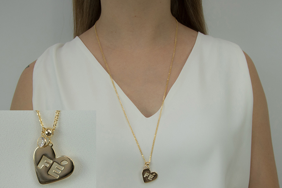 CHOKER BANHADA EM OURO, ELO 1,50mm, 37cm COMPRIMENTO, ZIRCÔNIA 4,50mm E MEDALHA CORAÇÃO 15mm DIÂMETRO