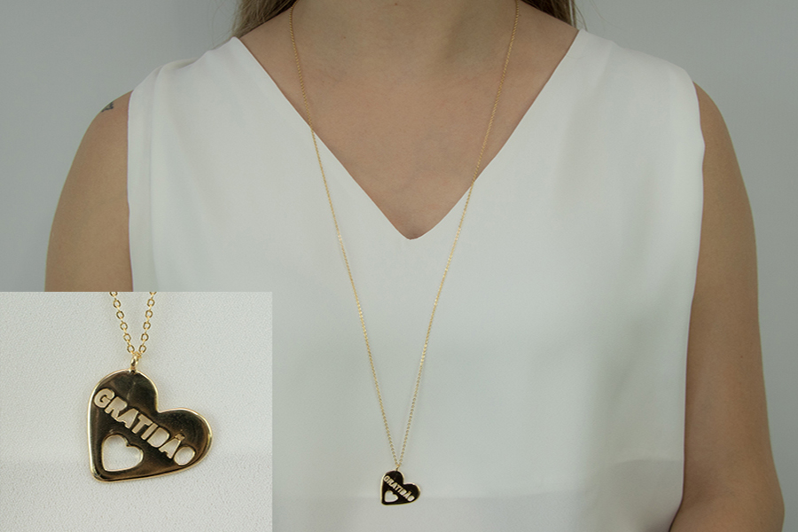 GARGANTILHA BANHADA EM OURO, 2,40mm ESPESSURA, 40cm DE COMPRIMENTO E CORAÇÃO 14mm LARGURA E 12mm ALTURA