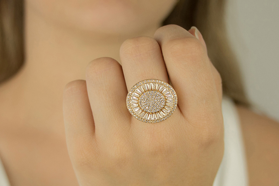ANEL BANHADO EM OURO, COM 130 ZIRCÔNIAS