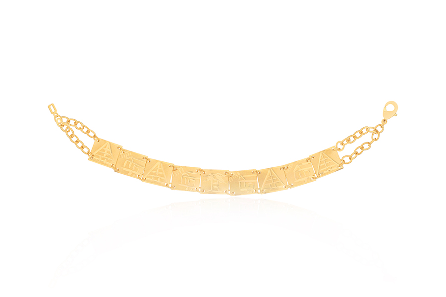 PULSEIRA INFANTIL BANHADA EM OURO, ELO DUPLO 1,80mm E CARTIER 3,50x1,90mm, 15cm COMPRIMENTO, CORAÇÃO, ANJO E CHAVE