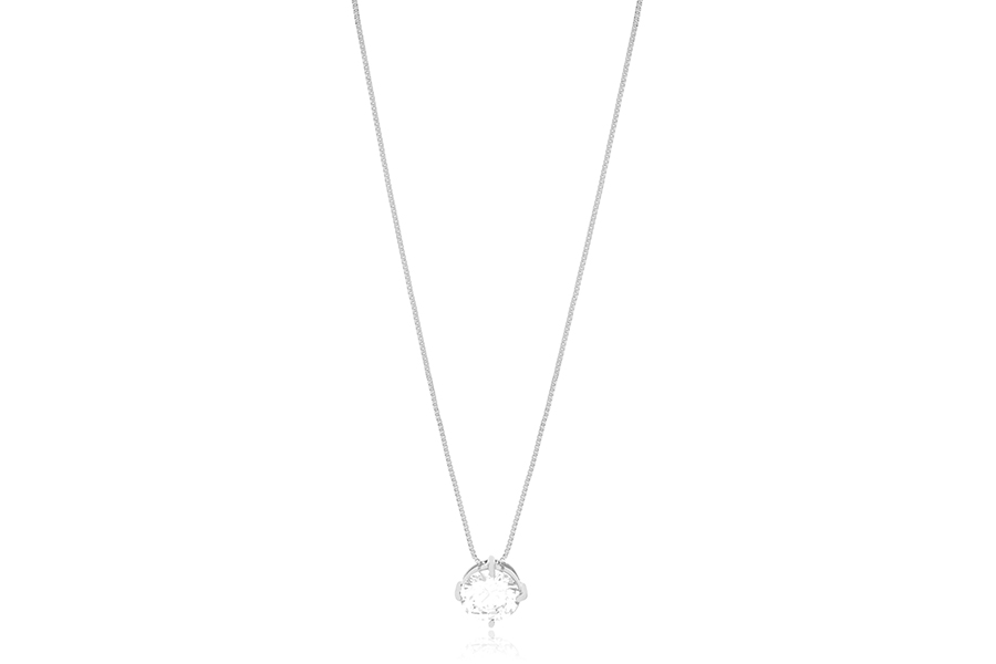 GARGANTILHA BANHADA EM RÓDIO BRANCO, RABO DE RATO 1mm, 40cm COMPRIMENTO, EXTENSOR 5cm COMPRIMENTO E PINGENTE 10x6mm, COLEÇÃO ATENA