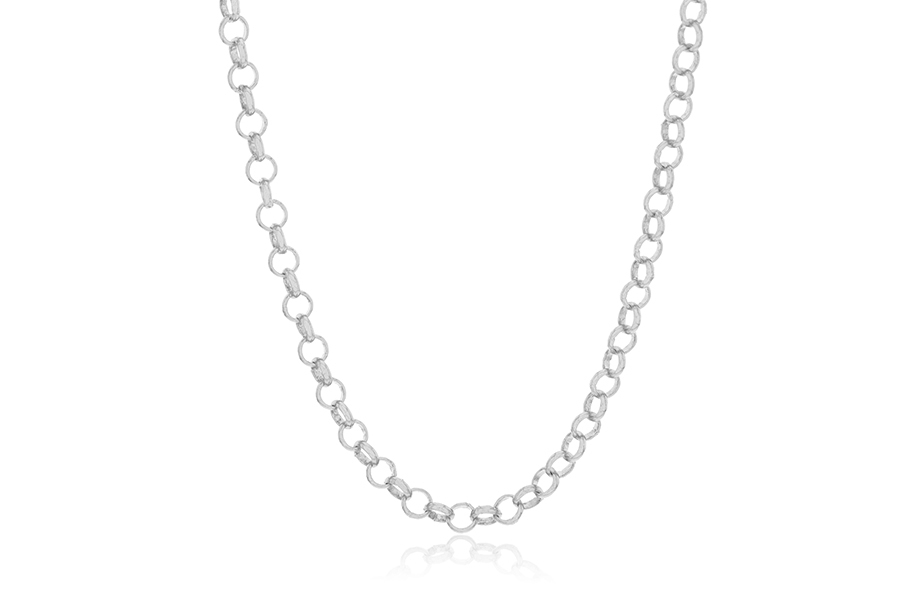 CHOKER BANHADA EM RÓDIO BRANCO, CORRENTE ELO CORDA 10mm, 37cm COMPRIMENTO, EXTENSOR 10cm COMPRIMENTO E PESO 46g