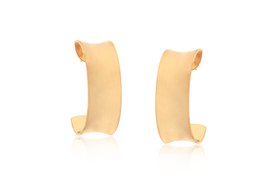 BRINCO BANHADO EM OURO, MEIA ARGOLA, 16mm ALTURA E 10,50mm LARGURA, LISO OU ACETINADO