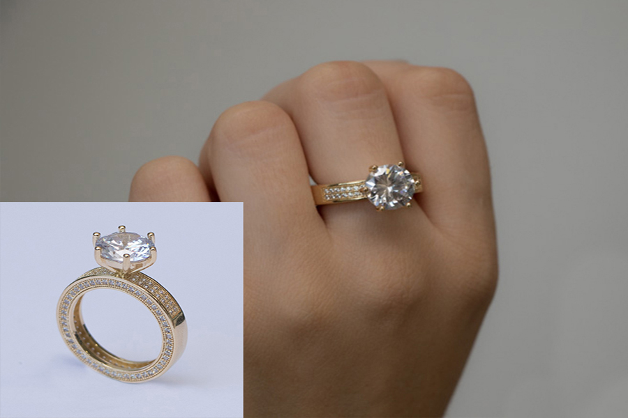 ANEL BANHADO EM OURO, SOLITÁRIO 10mm, ESTOQUE TRADICIONAL