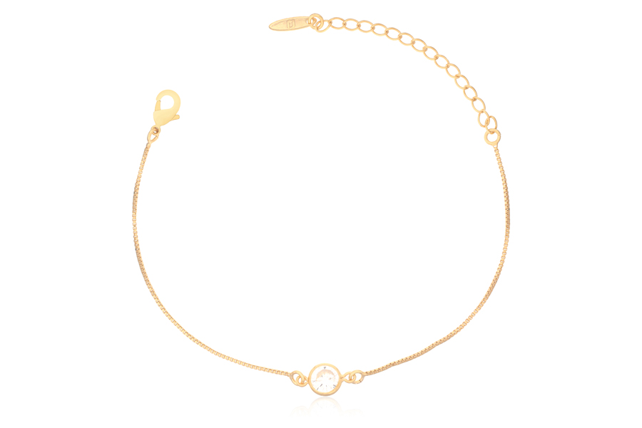 PULSEIRA BANHADO EM OURO CRISTAL REDONDO 14mm DIÂMETRO ELO PORTUGUÊS 3mm DIÂMETRO E 17cm COMPRIMENTO