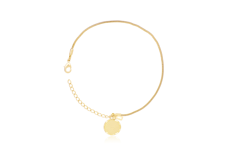 PULSEIRA BANHADA EM OURO, ELO 5mm LARGURA, 18cm COMPRIMENTO E MEDALHA PAI NOSSO 26mm DIÂMETRO