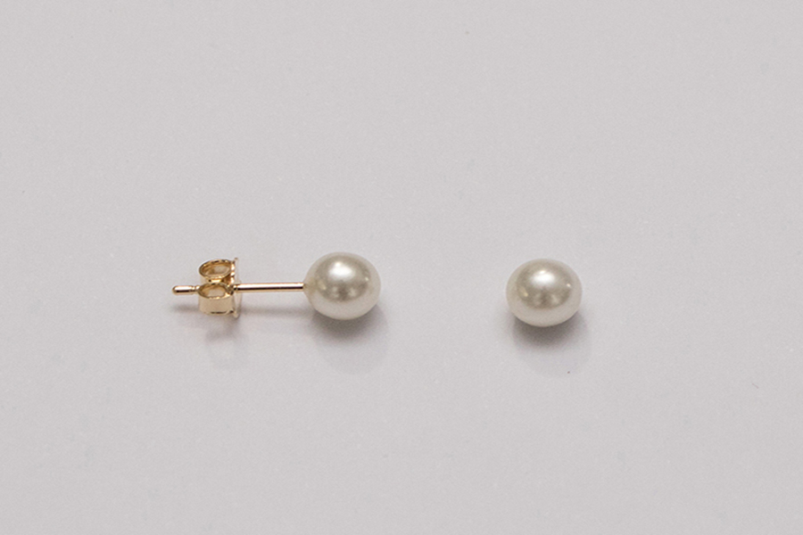BRINCO BANHADO EM OURO, BASE 8,50mm ALTURA, 3,80mm LARGURA E PÉROLA SHELL 6mm DIÂMETRO