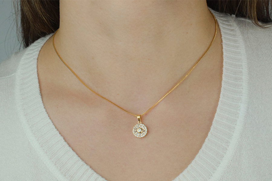 PINGENTE BANHADO EM OURO, ZIRCÔNIA 5mm DIÂMETRO