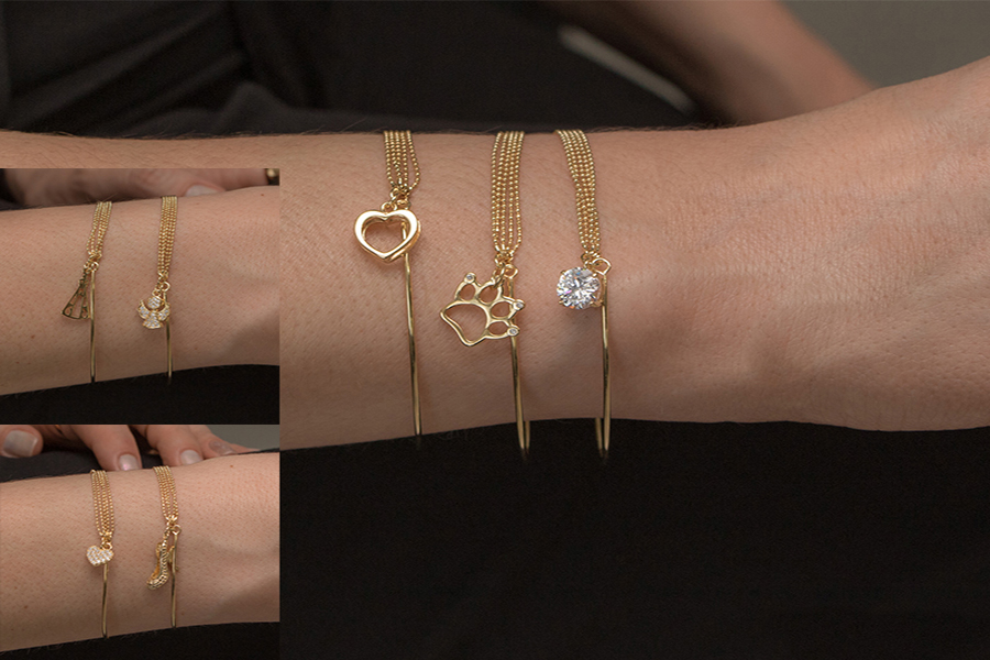 PULSEIRA BANHADA EM OURO, ELO PORTUGUÊS 3mm DIÂMETRO, CORAÇÃO 7mm LARGURA E GATO 16mm ALTURA