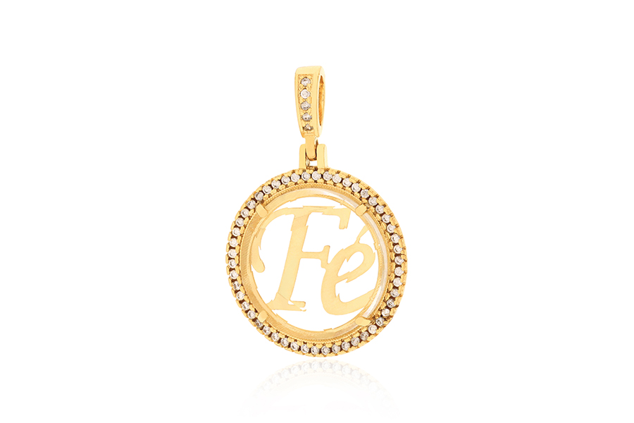 PINGENTE BANHADO EM OURO CRISTAL REDONDO 20mm DIÂMETRO, AMOR