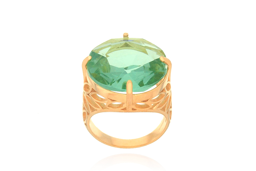 ANEL BANHADO EM OURO, CRISTAL OVAL 23X18mm