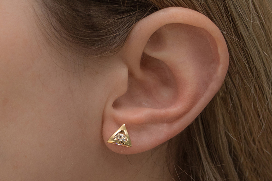 BRINCO BANHADO EM OURO, TRIÂNGULO 17X9mm, LISO OU ACETINADO