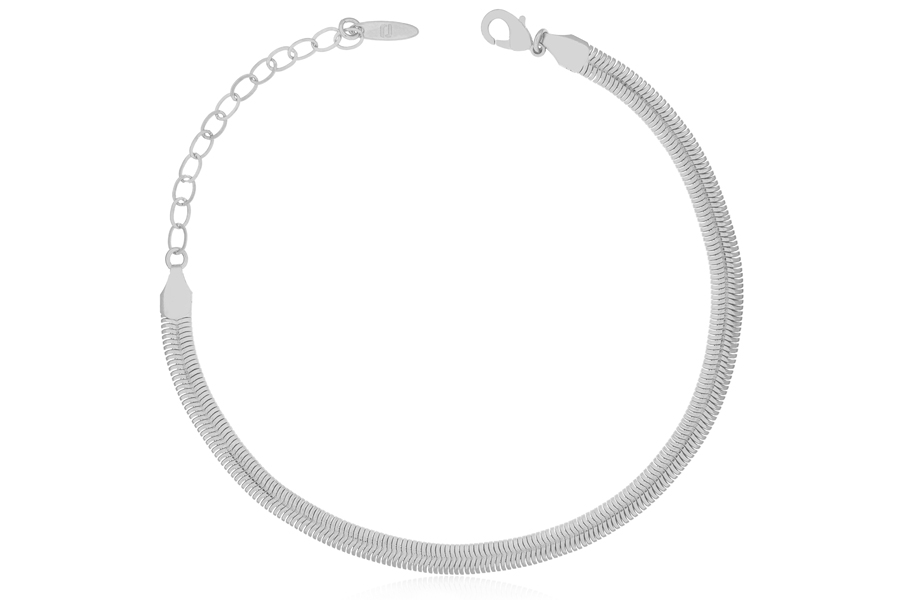 PULSEIRA BANHADA EM RÓDIO BRANCO, ELO PORTUGUÊS 5mm DIÂMETRO, 16cm COMPRIMENTO, EXTENSOR 5cm COMPRIMENTO E PONTO DE LUZ 8mm