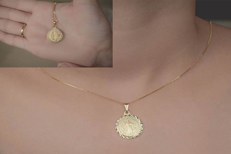 GARGANTILHA BANHADA EM OURO, ELO QUÁDRUPLO 1,20mm, 45cm COMPRIMENTO E ÁRVORE DA VIDA 20mm DE DIÂMETRO
