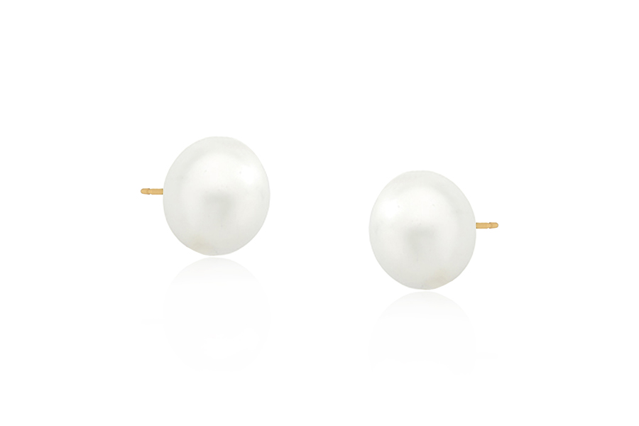 BRINCO BANHADO EM OURO, PÉROLA SHELL PÃO 8mm