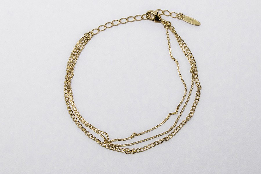 PULSEIRA BANHADA EM OURO, ELO 2mm LARGURA, 14cm COMPRIMENTO, ZIRCÔNIAS QUADRADA E GOTA COLORIDAS