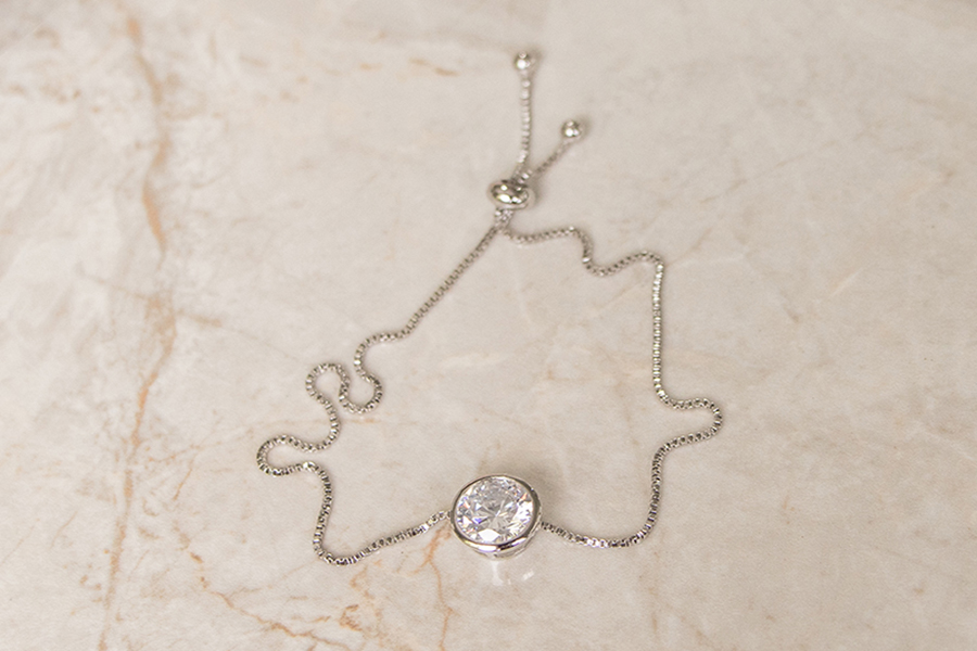 PULSEIRA BANHADA EM RÓDIO BRANCO, ELO PORTUGUÊS 3mm, 16cm COMPRIMENTO E PINGENTE ''FOREVER AND ALWAYS'' 17,50mm DIÂMETRO