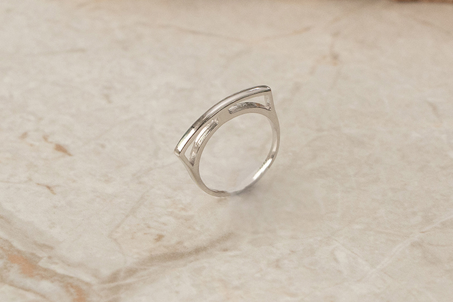 ANEL BANHADO EM RÓDIO BRANCO, TRIPLO ENTRELAÇADO