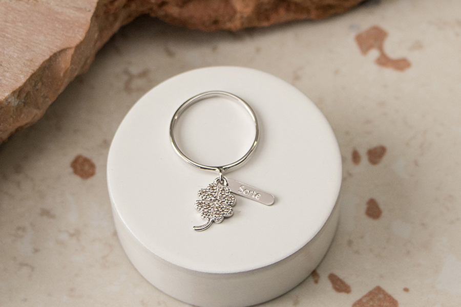 ANEL BANHADO EM RÓDIO BRANCO, ESFERAS LISAS E ZIRCÔNIAS