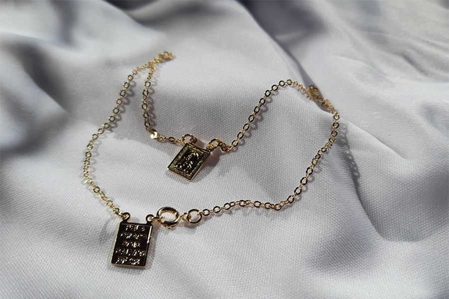 GARGANTILHA BANHADA EM OURO, ELO 2mm LARGURA, PONTO DE LUZ 4,50mm E SÃO BENTO 12,50mm DIÂMETRO