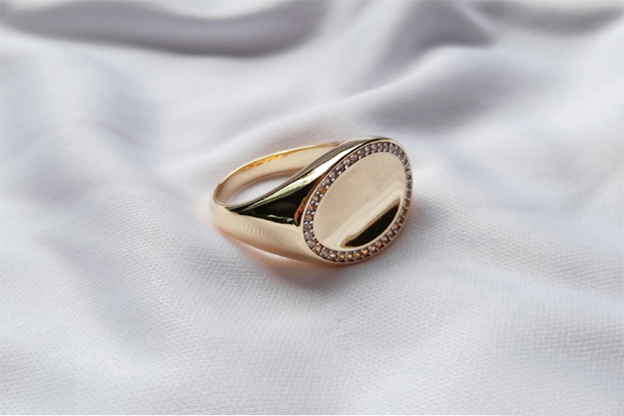 ANEL BANHADO EM OURO, COM 130 ZIRCÔNIAS