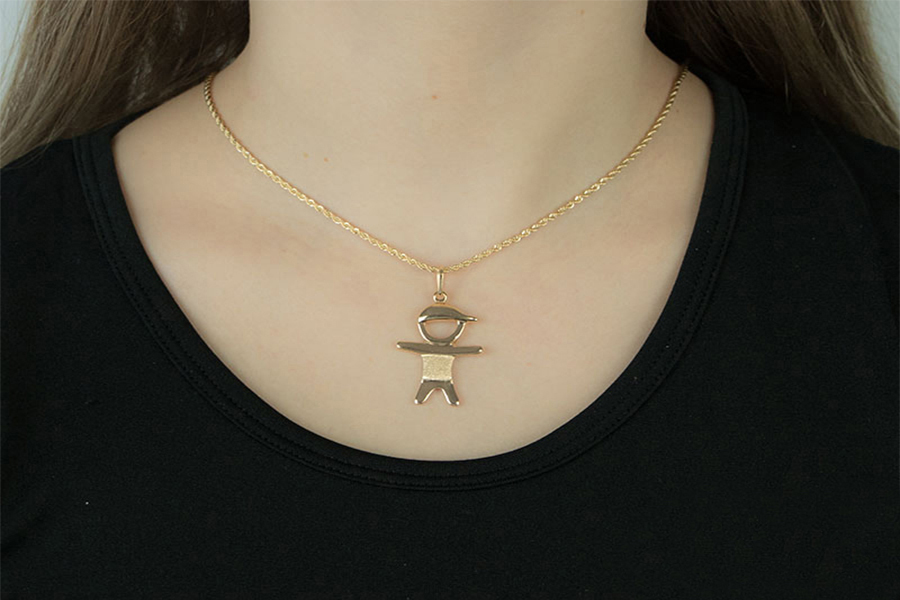 PINGENTE BANHADO EM OURO MENINA COM 10 ZIRCÔNIAS E 24mm ALTURA